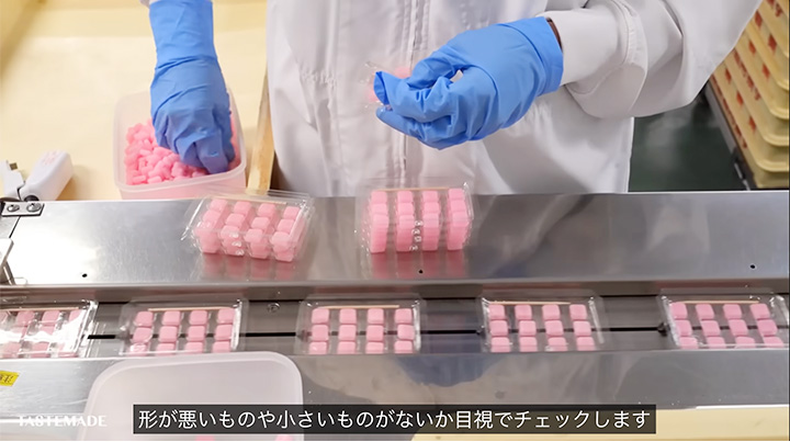 フル動画はYouTubeの『さくらんぼ餅ができるまで🍒駄菓子作りの裏側に密着!【工場見学】【字幕付き】』