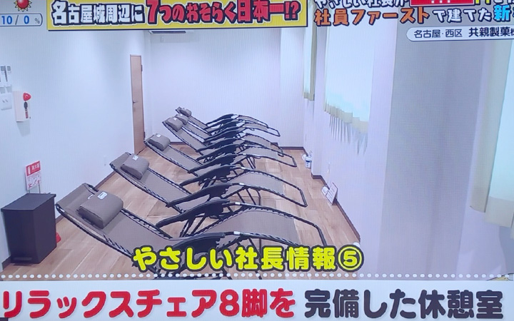 実際におぎやはぎのお2人にリラックスチェアの寝心地を確認していただき、「少しでも昼寝をすると、午後のパフォーマンスがまるで違うんだよね〜」と、社長と意気投合。この気持ちがわかり合えたということは、おぎやはぎさんも「おそらく日本一のやさしさ」の持ち主なのだと思いました。